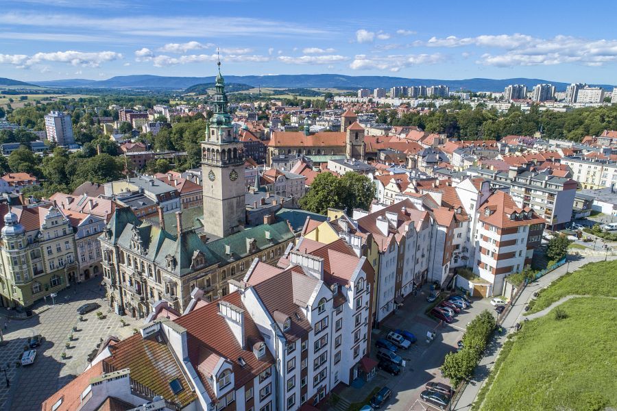Od kostela Nanebevzetí Panny Marie pokračujeme ulicemi Kostelní (Kościelna) a Zemské armády (Armii Krajowej) na hlavní náměstí zvané většinou zcela prozaicky Rynek, ačkoliv při polonizaci města po roce 1945 dostalo název po polském knížeti, který byl také dočasně v letech 1003-04 českým vládcem a který se dva měsíce před svou smrtí stal v roce 1025 prvním polským králem.