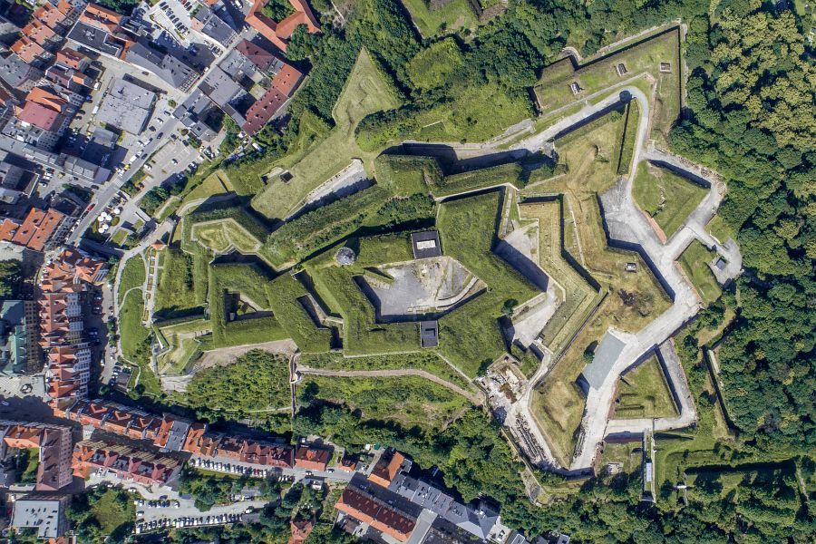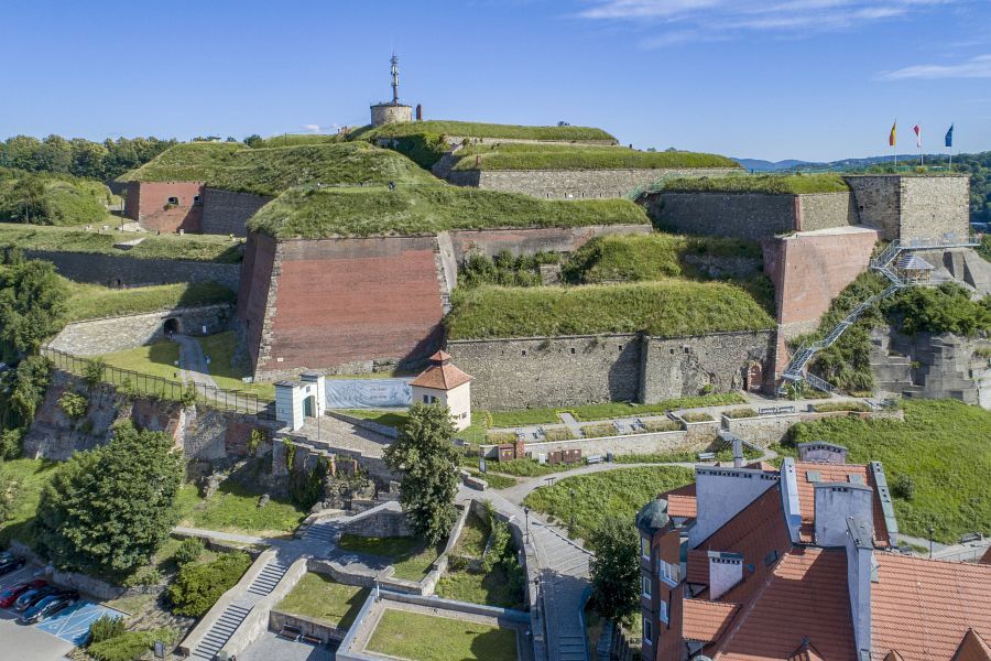 S prohlídkou jsme začali na Zámeckém vrchu (Góra zamkowa), kde se nacházelo již v raném středověku slavníkovské hradiště. Na jeho místě v roce 1126 nechal postavil kníže Soběslav I. kamenný hrad, na který dosadil jako svého purkrabího Hroznatu. Zde se pak v roce 1137 setkal s polským knížetem Boleslavem III. a uzavřeli zde spolu dohodu, na základě které se Kladsko stalo trvalou součástí Čech. V roce 1248 získal hrad za věrné služby od krále Václava I. Havel z Lemberka (manžel sv. Zdislavy), který započal území Kladské kotliny osídlovat kolonisty povolanými z Čech i Německa a založil také nedaleké město Hawelswerde = Havlova vůle, dnes Kladská Bystřice (polsky Bystrzyca Kłodzka). Dne 23. října 1350 na hradě založil pražský arcibiskup Arnošt z Pardubic se svými bratry Smilem a Vilémem klášter Hora Panny Marie, neboť jejich otec zde býval purkrabím a bratři se s největší pravděpodobností i na tomto hradě narodili (to by vysvětlovalo pozdější Arnoštův vřelý vztah k městu, kde je i pohřben). Za vlády Jiřího z Poděbrad byl hrad kolem roku 1460 výrazně přestavěn na pozdně středověkou rezidenci, která byla renesančně upravena v letech 1557-60 architektem Ernstem Lorenzem Kirschkem. V roce 1595 byl v rámci další fáze přestavby zrušen Arnoštův klášter v areálu hradu. V roce 1622 započala přestavba hradu na bastionovou pevnost podle návrhu vratislavského architekta a stavitele opevnění Valentina von Säbische, vznikla nová korunní hradba sestávající z tří bastionů chráněných trojúhelníkovými raveliny obrácenými k severu, od jižní strany, kde se nachází hlavní vstup, byl hrad přirozeně chráněn strmým kamenitým svahem. V 80. letech 17. století stavbu pevnosti dokončil slavný vratislavský stavitel a architekt italského původu Jacopo Carove. Druhá a poslední fáze přestavby pevnosti se odehrála za vlády Fridricha II. Velikého. Po první slezské válce v roce 1742 vydal Bedřich II. Pruský rozkaz k dalšímu posílení kladské pevnosti, kterou považoval za jeden z nejdůležitějších bodů v rámci obrany státu proti Habsburské říši, na které ji získal. Autorem projektu přestavby byl generál a stavitel pevností Gerhard Cornelius von Walrave, který nechal do základů odstranit zbytky starého hradu. V roce 1770 pak byl zformován nejvyšší bod pevnosti – Donjon – masivní věž, poslední útočiště a centrum protiútoku při obraně pevnosti. V donjonu jsou umístěny třípodlažní, až 20 metrů hluboké sklady a kasematy se zbrojnicí, lékárnou, laboratoří a s prostorem pro posádku. Donjon obklopoval řetězec bastionů, kleští, redut a redanů, v předpolí pak byly šance a palebná stanoviště, dále pak systém suchých příkopů o hloubce až 10 metrů. V této době vznikl také rozsáhlý komplex podzemních prostor, dlouhý přes 40 km, podobný svým charakterem těm v dalších barokních pevnostech. Po roce 1867 byla pevnost přeměněna na vězení a kasárna, za II. světové války zde bylo vězení a mučírna pro politické vězně a válečné zajatce. V roce 1944 zde firma AEG Werke vyráběla součástky ponorek a raket V-1 a V-2. Po válce pak pevnost sloužila až do roku 1960 polské armádě. V tomto roce byla prohlášena kulturní památkou a začaly probíhat první opravy a zpřístupnění turistům. Zajímavostí je, že se zde na počátku 70. let 20. století natáčel poslední (21.) díl s názvem Domů legendárního seriálu Čtyři z tanku a pes.