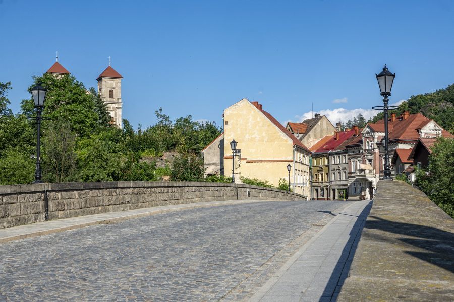 Konec je u města Varta pod mosty přes řeku, z nichž ten nestarší, kamenný, slouží již jen místní dopravě. Doplňuje ho moderní betonový silniční most na mezinárodní silnici E 67 z Prahy do Tallinu (a Helsinek) a most železniční na trati Vratislav – Kladsko – Ústí nad Orlicí otevřené v roce 1874. Nejstarší dřevěný most byl přes Kladskou Nisu postaven již ve 13. století, kdy nahradil původní brod. Současný Kamenný most (Most Kamienny) byl postaven v letech 1515-89 a dávní mistři ho postavili opravdu fortelně, protože v roce 1997 přestál ničivou povodeň, když se hladina řeky zvedla až o 11 metrů, takže se převalila až přes vozovku. V roce 2019 se na most vrátila kopie sochy sv. Jana Nepomuckého z roku 1722, odstraněná během opravy mostu v 50. letech 20. století.
