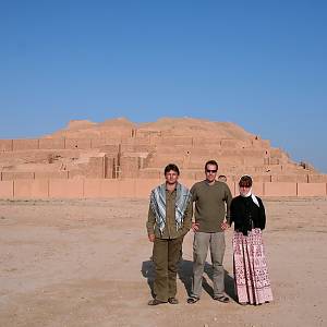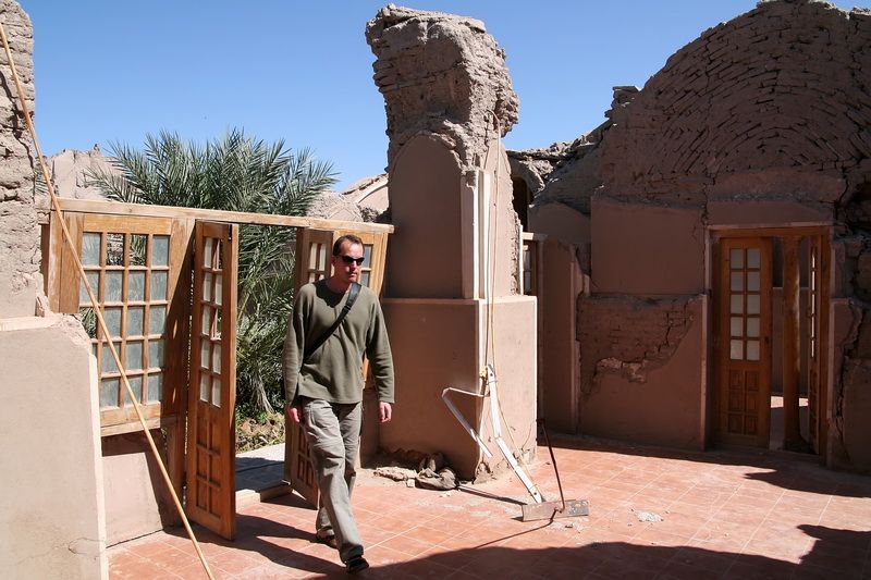 To vstávání brzy bylo již v 5:30 hodin, neboť autobus do nejjižnějšího cíle naší cesty, města Bam, odjíždí již v 7:00 hodin. Když jsme se probudili, sluníčko bylo na obloze, a tak se nám dobře vstávalo. Na autobusovém nádraží byl ještě zatím klid, ale i z těch nemnohých cestujících se s námi většina přišla pozdravit, potřást si rukou a zeptat se, kam jedeme. V autobuse jsme dostali čestná místa vpředu, spolu s panem Nimou Kavandem. Nima je architekt, který se podílí na obnově zemětřesením zničeného Bamu, takže jsme měli celou cestu postaráno o přísun informací. Dokonce jsme mohli nahlédnout do dokumentace, zpracované k rekonstrukci města. Cesta rychle utíkala, průvodčí nám pouštěl perskou národní muziku a se zájmem sledoval, co si s Nimou povídáme. Také bych měl vlastně napsat, proč až do vzdáleného Bamu jedeme, když víme o katastrofě, která ho v lednu 2004 zničila. Bobina se tam prostě chtěla strašně podívat a navíc nevěřila, že z města nic nezbylo. Takže se jednalo o plnění přání. Nakonec nelitujeme, protože jsme alespoň na vlastní oči viděli dílo zkázy. Po příjezdu na náměstí Birunšahr v Bamu se s námi rozloučil Nima a my vyrazili ke starému městu, zvanému Arg-e Bam. Když nás taxík vyklopil u malé budky se závorou pod zřícenými hliněnými hradbami, nevěděli jsme, že to jsou vlastně zbytky velkolepé vstupní jižní brány. Hlídač nám ochotně uschoval u sebe zavazadla a našemu dotazu po vstupenkách se od srdce zasmál se slovy „A za co byste chtěli platit?“. U závory si nás převzal p. Moobaraki z ochranky, která to tu hlídá, a vzal nás na prohlídku. Minuli jsme velkou mramorovou ceduli, že Bam je pod ochranou UNESCO a vystoupali na malý pahorek, kde stávala jižní brána. Otevřel se nám zdrcující pohled na nekonečné ruiny starého města. Všechno se v nás sevřelo, protože dílo zkázy je dokonáno.