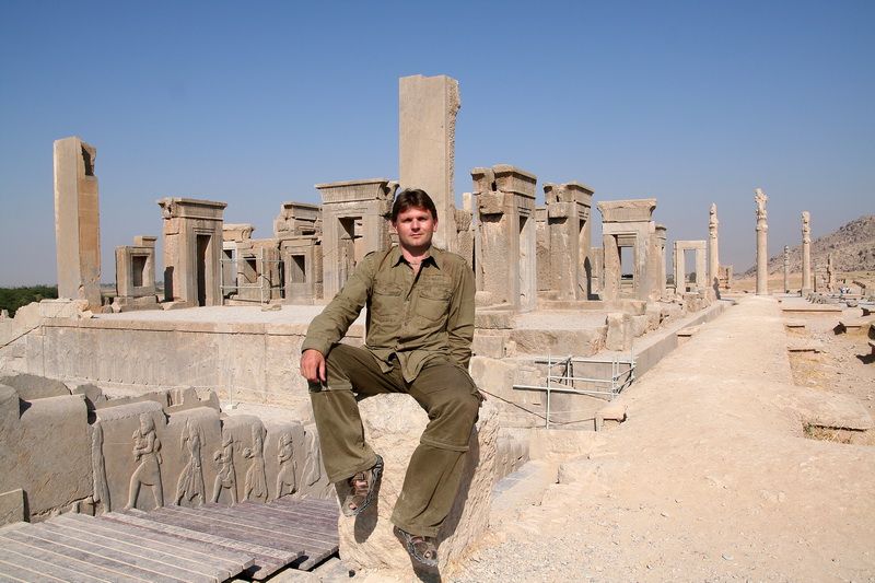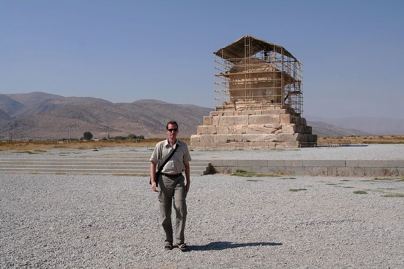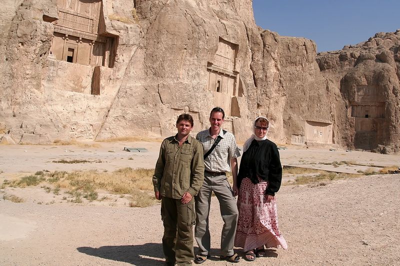 Již v 7:00 hodin ráno stojíme na ulici a na zdejší poměry dlouho (asi 10 minut) se nám nedaří za slušnou cenu získat taxík. Musíme tedy dát za pravdu zvěstem, že zdejší taxikáři mají poněkud našponované ceny. Oni totiž moc dobře vědí, že jinak nelze Persepolis, Pasargady a Nakš-é Rostam za jeden den navštívit. Nakonec se nám podařilo jednoho řidiče k této celodenní výpravě přesvědčit, byť náš nový řidič a společník Alí byl z počátku trochu zmatený a vůbec neuměl anglicky; na druhou stranu alespoň nebudeme muset komunikovat. Bezpečně pochopil, že chceme do Persepole, ale Pasargady nějak nepochopil, jak se později ukázalo. Po krátkém zastavení v bance při cestě, kde se marně snažil najít někoho, kdo umí anglicky, aby nám dělal tlumočníka, jsme v 8:00 hodin dojeli na parkoviště před vstupem do areálu v Persepoli. Díky hlídači, který naštěstí uměl bravurně anglicky, jsme si vše konečně vysvětlili a domluvili si další cestu až do Pasargad. Alí s námi na prohlídku vykopávek nechtěl a tak jsme ho u auta opustili. Na parkovišti stály pouze 4 další auta a 2 autobusy, což je k významu této památky neuvěřitelné. Být Persepolis kdekoliv jinde, bude v obležení tisíců turistů denně.