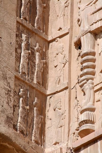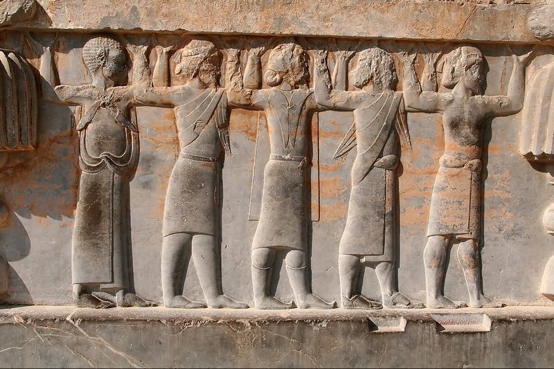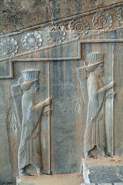 Nápis v hrobce Dáreia I. Velikého: „Když Ahura-Mazda uviděl tuto zemi v nepořádku, odevzdal mi ji. Udělal mne králem. Já jsem král. Milostí Ahura-Mazdovou jsem ji zasadil na její místo. Co jsem jim řekl, to učinili, jak bylo mou vůlí. Jestliže uvážíš to, jak bylo mnoho krajin, které král Dárjuš držel, pohleď na obrazy postav, které nesou trůn. Tak to zvíš, pak se ti rozjasní, že kopí perského muže daleko dospělo, pak se ti rozjasní, že perský muž i daleko od Persie bitvy vybojoval“.