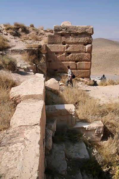 Když jsme se vrátili na silnici a vyjeli směrem do hor, na ukazatelích se objevilo: Pasargady 95 km. No – je to ještě pěkný kousek cesty, ale Alí měl plyn sešlápnutý až u podlahy, a tak jsme tam za hodinu dojeli. Dnešní vesnice je prašná pouštní osada, kde byl pouze jeden krámek s potravinami a škola. Jinak nic nenasvědčovalo tomu, že se nám od poslední chýše otevře úchvatný pohled na planinu ohraničenou ze tří stran horami, na které stálo hlavní město prvního achajmenovského krále, Kýra II. Velikého. U brány jsme zaplatili legrační vstupné (v přepočtu 10 Kč) a náš řidič i s vozem to měl zadarmo. Vjezd pro auta do areálu je velmi důležitý, neboť velkolepá hrobka Kýra II. Velikého je sice hned u vchodu, ale citadela se zbytky paláce (tzv. Trůn Šalamounovy matky) je asi 6 kilometrů daleko. Mezi tím se nacházejí zbytky několika dalších paláců a městských staveb, vše je propojeno asfaltovou silnicí. Přijet sem bez auta a chodit po této vyprahlé pláni na žhnoucím slunci celý den by muselo být neskutečně nepříjemné. Takto jsme všechna místa s vykopávkami obrazili za 1,5 hodiny.