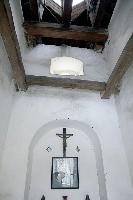 Uvnitř se nachází obrázek Panny Marie s Ježíškem a dřevěný kříž neurčeného stáří. Ve věži visí zvon z roku 1932 od zvonaře Rudolfa Pernera ze Suché Vrbné u Českých Budějovic, který váží 42,5 kg.