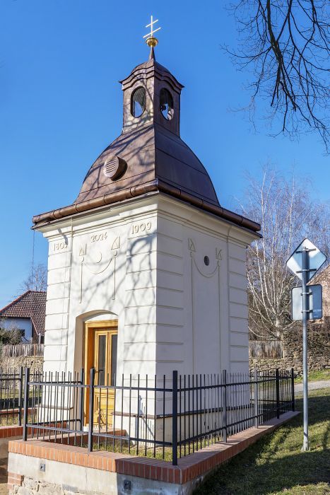Kaple stojí uprostřed vsi v ohybu silnice.