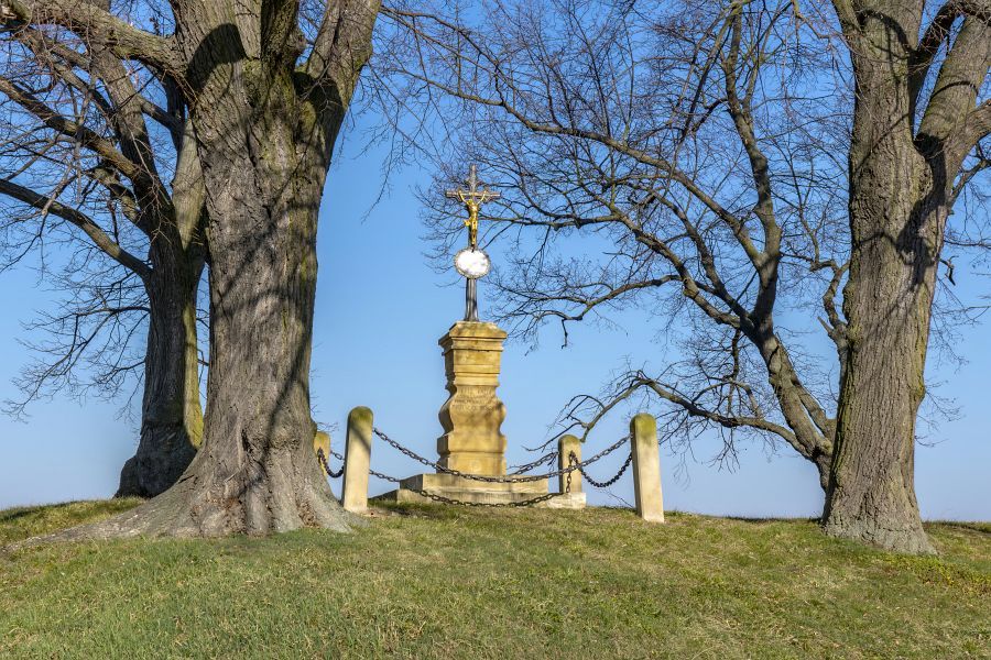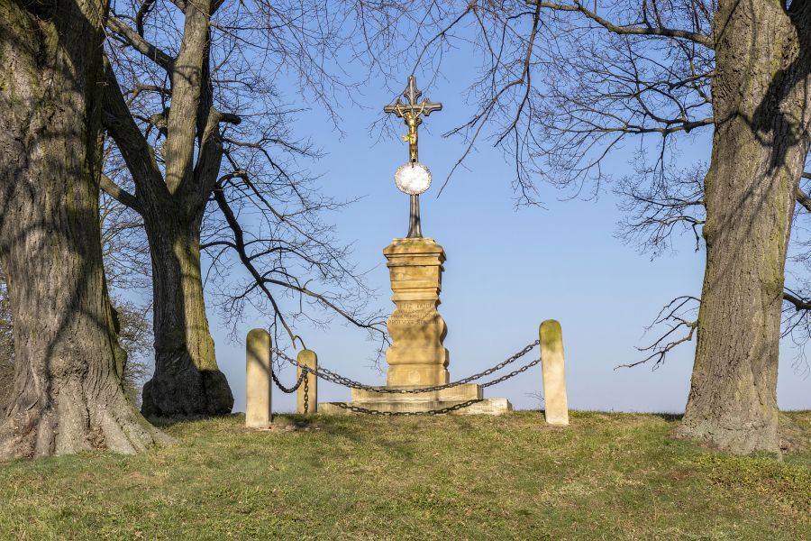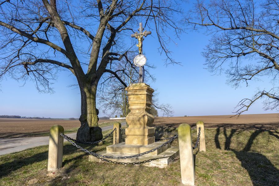 Křížek z roku 1757, postavený na počest rakouského vítězství v bitvě u Kolína. V létě roku 2021 byl křížek neznámým vandalem poničen (horní část byla stržena a došlo k rozbití litinového kříže s korpusem Krista). V roce 2022 byl nákladem obce opraven, sokl byl zbaven tmavého nátěru a kolem byly osazeny nové kamené sloupky (původní byly odcizeny v 90. letech), spojené řetězem.