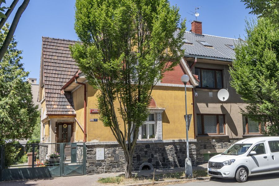 Nárožní dům z let 1921-3, postavený podle návrhu Jindřicha Freiwalda, který ale po přestavbě v 50. letech 20. století ztratil původní charekter, nicméně dispozice domu a ostrý štít prozrazuje původní Freiwaldův návrh. Při bombardování 15. března 1945 byla poškozena pouze krytina střechy od tlakové vlny.