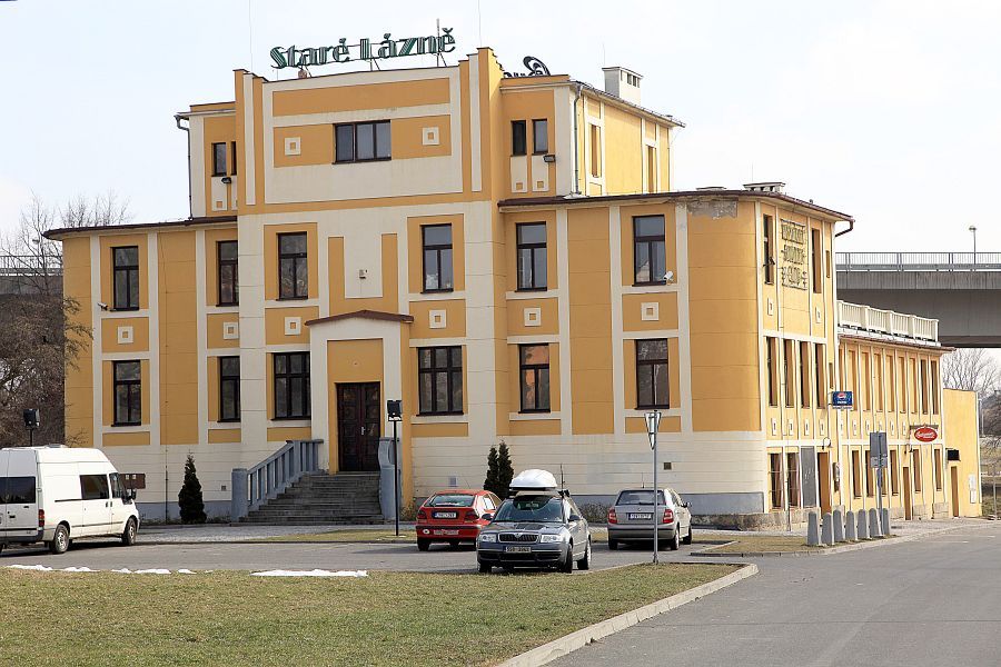 Staré lázně čp. 287 leží na Starokolínské ulici mezi železniční tratí a Labem.