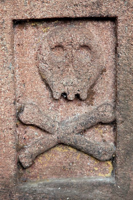 Kamenný kříž z poloviny 19. století zhotovený z červeného nučického pískovce, vyrůstající z osmibokého soklu. Na kříži je pozlacený korpus Krista, v dolní části soklu reliéf lebky se zkříženými hnáty.