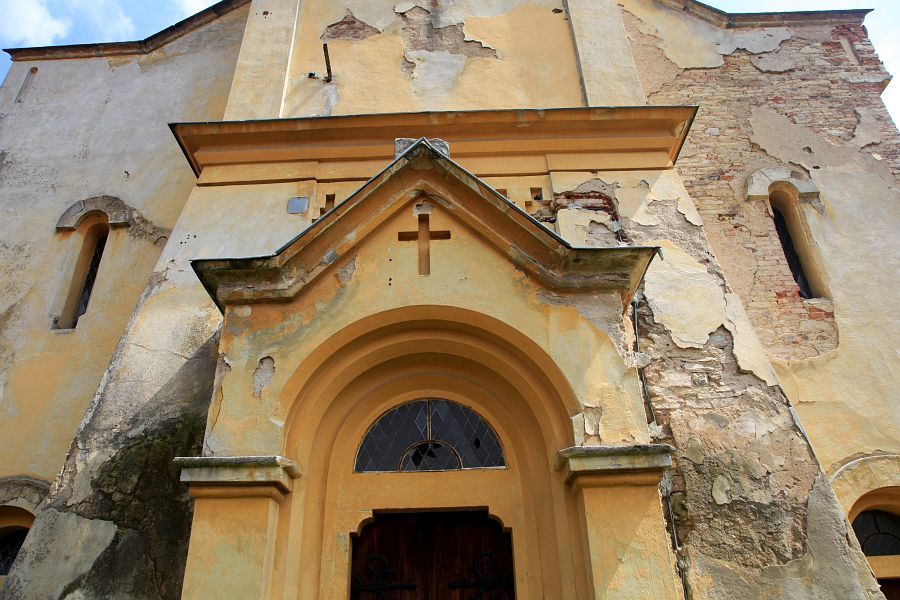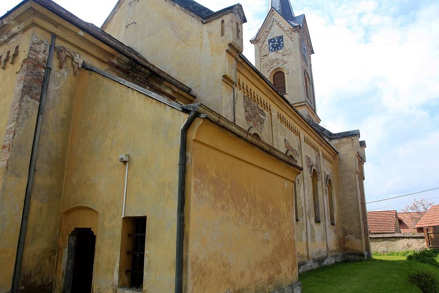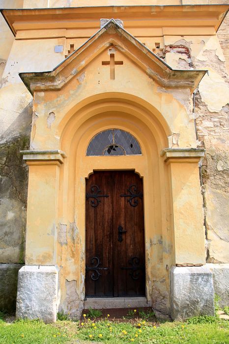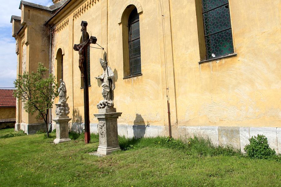 Jednolodní obdélný kostel s pravoúhlým presbytářem, čtvercovou sakristií po severní straně a hranolovou věží nad západním průčelím. Z původní stavby se dochoval pozdně gotický pravoúhlý vstupní portál do sakristie a snad i částečně raně gotické zdivo presbytáře. Ve vnější jižní zdi lodi se dochoval zbytek ostění hrotitého gotického portálu.