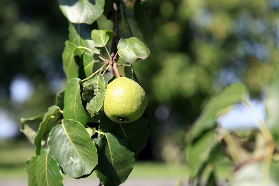 Památná hrušeň roste na kraji obce vpravo od silnice do Peček.