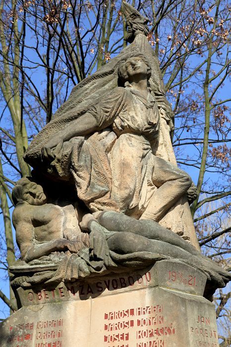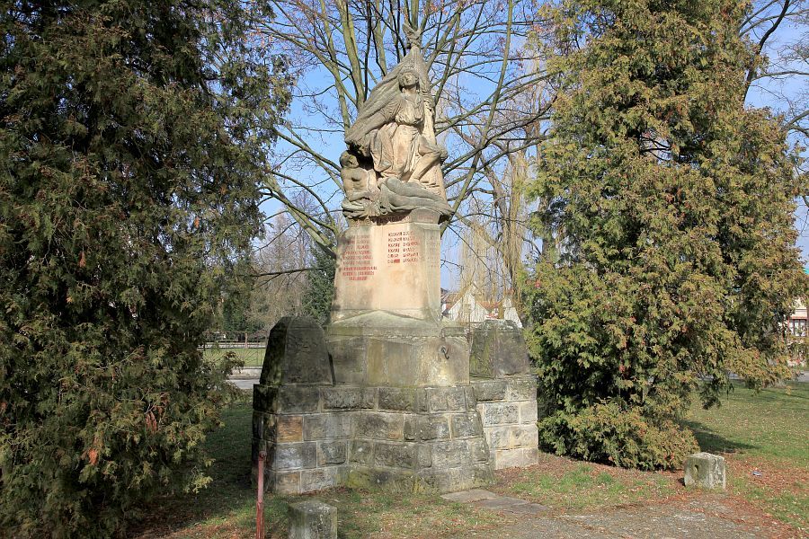 Kubisticky pojatý pískovcový pomník padlým v 1. světové válce od Emanuela Juliána Kodeta, odhalený 28. října 1921. V roce 1945 byla na pomník připsána jména obětí 2. světové války. V roce 1984 byl památník restaurován Drahomírou Šťovíčkovou a znovu byl opraven v roce 2018 u příležitosti 100. výročí vzniku ČSR.