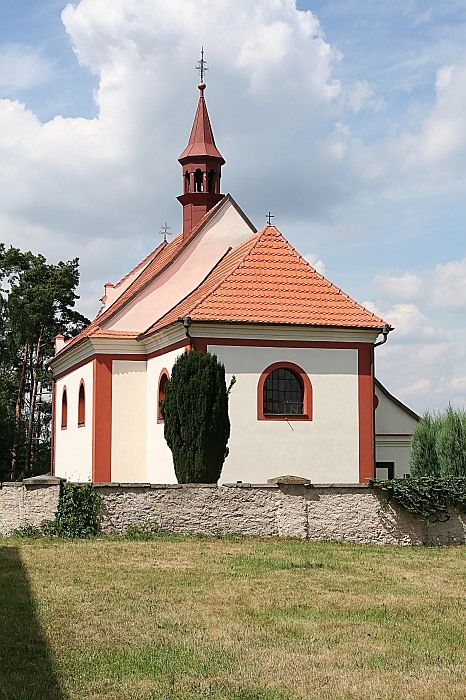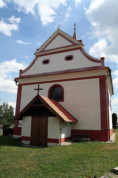 Kostel je jednoduchá jednolodní stavba s nižším pravoúhlým presbytářem. Hlavní loď je obdélná s dvojicí půlkruhově zaklenutých oken na každé straně. Západní průčelí vrcholí štítem, rozděleným horizontální římsou na dvě úrovně. První úroveň má konkávně zvlněné okraje, druhá je trojúhelníkovitá. Při patách obou úrovní se na okrajích nacházejí drobné pilíře. Celý štít je svou formou ještě pozdně renesanční. Před průčelí byla později přistavěna jednoduchá předsíň. Do severovýchodního koutu mezi lodí o presbytářem je vložena obdélná sakristie. Loď kryje sedlová střecha se sanktusovou vížkou, presbytář má střechu valbovou.