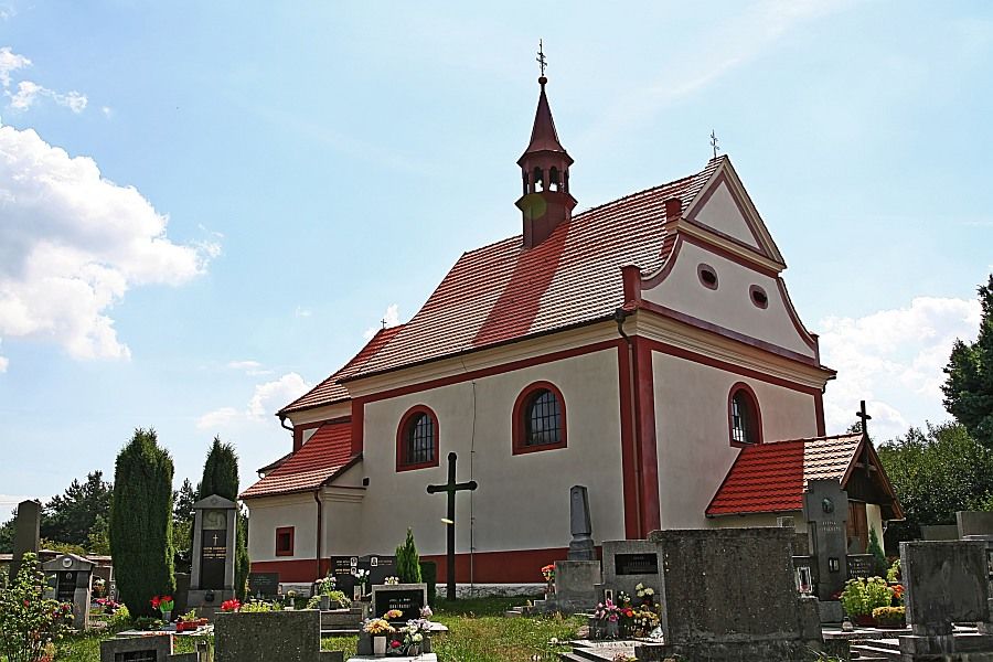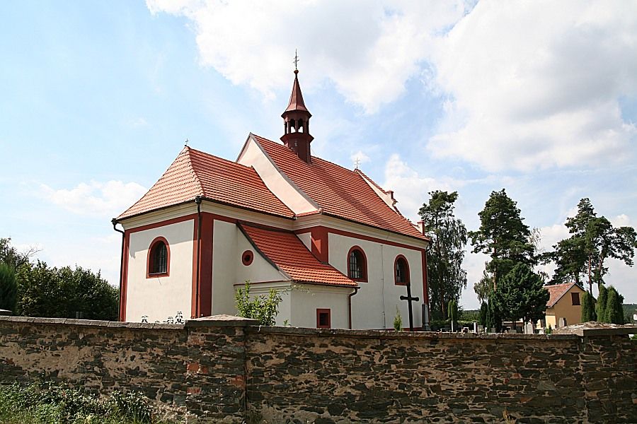 Původně gotický kostel doložený jako farní v roce 1354 pod rožmberskou patronací; umístění kostela na výrazném návrší by mohlo poukazovat k jeho mnohem staršímu původu. Na jeho místě byl vystavěn po roce 1685 nový raně barokní kostel, jehož stavebníkem byl hrabě František Oldřich Kinský. koncem 60. let byl ohrožen při požáru sousední dřevěné zvonice, ohořely trámy v západním průčelí (stopy po ohoření zachovány dodnes). V letech 2005–07 proběhla generální rekonstrukce kostela.