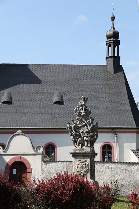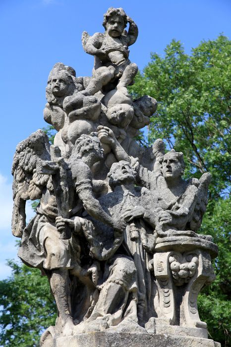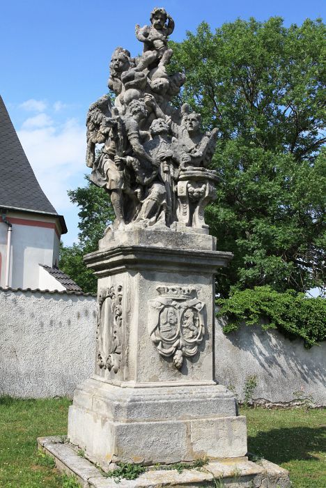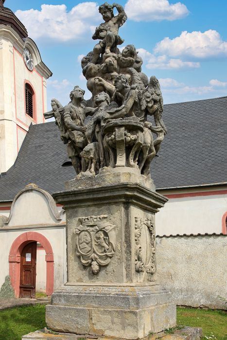 Barokní sousoší zhotovené neznámým mistrem v rozmezí let 1711-23 na objednávku hraběte Leopolda Ignáce Věžníka z Věžník, tehdejšího držitele panství. Restaurováno bylo v roce 1969 akademickým sochařem Miloslavem Smrkovským a v roce 1993 pak znovu Miloslavem Smrkovským a Martou Nadějovou z Kutné Hory.