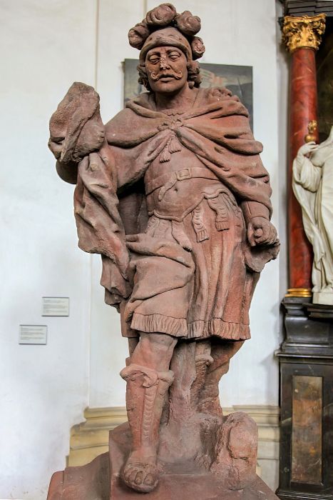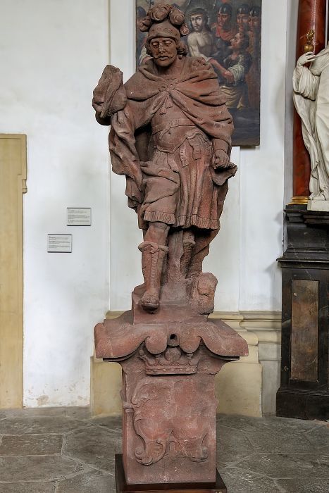 Pozdně barokní socha z červeného pískovce z let 1750–54 od neznámého sochaře, uvažovat lze o kutnohorském sochaři Martinu Máslovi (viz socha sv. Jana Nepomuckého v Plaňanech).