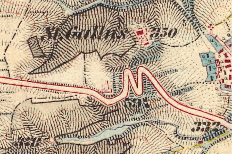 Původní serpentýna z roku 1844 byla nahrazena současnou přeložkou, která vede táhlým obloukem po severní straně kopce Panák s hradištěm. Projekt současné přeložky byl vypracován v roce 1938 a vzhledem k vypuknutí války byla realizace stavby uskutečněna až v letech 1940-41.