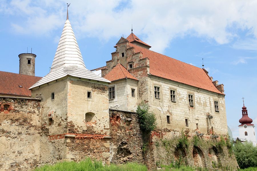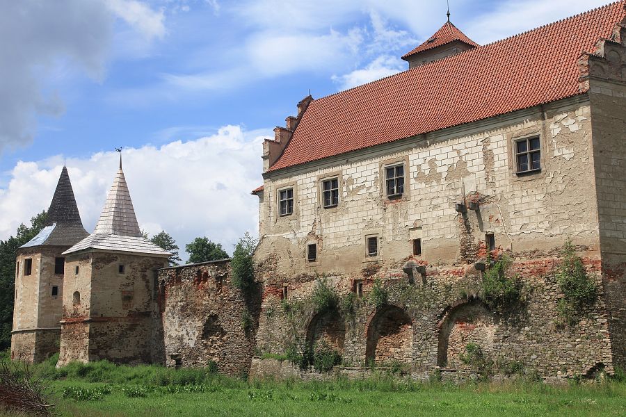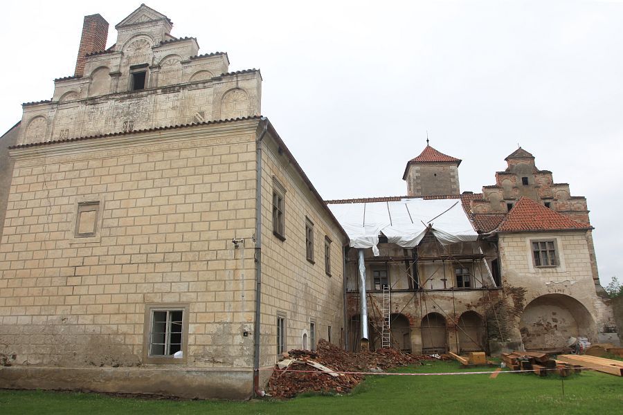 Přestože je zámek v Červené Řečici na Pelhřimovsku jednou z nejvýznamnějších staveb z přelomu gotiky a renesance na českém venkově, v uplynulých desetiletích mu hrozil téměř úplný zánik. Dneska si jen těžko umíme představit, že třeba v 60. letech minulého století sloužily barokní reprezentační sály se vzácnými textilními tapetami jako sýpky na obilí. V roce 2011 ale započal současný majitel s náročnou opravou, a hned rok na to zámek poprvé otevřel své brány návštěvnické veřejnosti. Úsilí všech, co se snaží o jeho záchranu, pak bylo v loňském roce korunováno prohlášením zámku za národní kulturní památku, tedy přijetí do prestižního klubu 300 nejvýznamnějších památek České republiky. Přestože jeho fasády ani interiéry zatím nepřipomínají období největší slávy, milovníci architektury si ale při jeho prohlídce rozhodně přijdou na své. Nás provede průvodce a správce v jedné osobě, pan Vladimír Vlček.